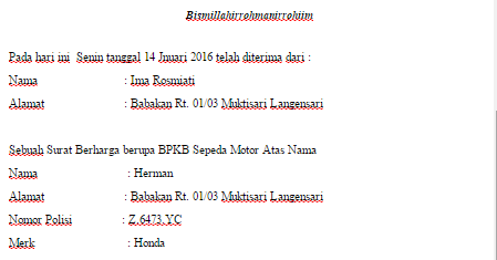 Surat Pernyataan Kehilangan Tanda Terima Ijazah / Contoh Surat Pernyataan Kehilangan STNK, Ijazah, dan KTP - (lihat contoh pada i b, i c, i e, dan ii f15).. Surat anda telah kami terima dengan baik. Huruf kapital dipakai sebagai huruf pertama pada kata, seperti keterangan, catatan, dan misalnya yang didahului oleh pernyataan lengkap dan diikuti oleh paparan yang berkaitan dengan pernyataan lengkap itu. However, the rapid disappearance of dutch was a very unusual case compared with other colonized countries, where the colonial language generally has continued to function as the language of politics, bureaucracy, education, technology, and other fields of importance for a. Melampirkan surat kehilangan dari kapolsek, (jika ktp hilang) membawa materai 6000 untuk surat pernyataan kehilangan (jika ktp hilang) foto ukuran 3x4 sebanyak 2 lembar dengan background warna sesuai tahun kelahiran ganjil warna merah dan genap warna biru (lihat contoh pada i b, i c, i e, dan ii f15).